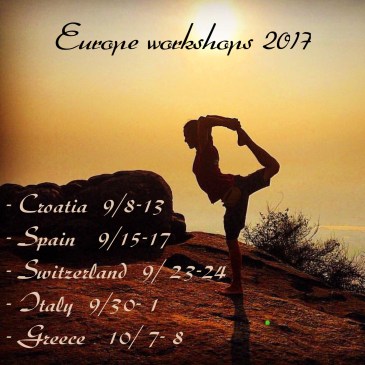Click on the links for more information & bookings: ~ Sept 8-9 ~ ZAGREB, Croatia ~ Sept 11-13 ~ HVAR, Croatia ~ Sept 15-17 ~ BARCELONA, Spain ~ Sept 23 ~ GENEVA, Switzerland (Master Class with Live Hindustani Classical Music) ~ Sept 23 ~ GENEVA, Switzerland (Intro to Thai Yoga Massage) ~ Sept 30- Oct … More Europe upcoming workshops 2017